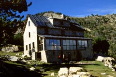 abri. Not that we considered ourselves to be the only ones worthy to share the mountains, but these folks had no hat or gloves, and generally appeared to be only slightly better dressed than tourists. They disputed something in Catalan, probably, which one of them had forgotten to pack the hats! 'They will soon be beaten back off the tops' I commented to Karen. We were both to be further astonished when they turned up at the refuge that evening, 1hr after our arrival; perhaps we were over-dressed!?