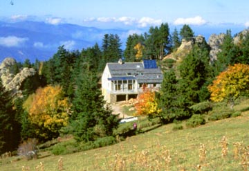 piste which led right to the refuge and parked cars. Vehicle access to a refuge at least means that the food should be good, and we were booked in for full board that night. Would we get satisfaction here? A notice on the door informed us the premises were locked until 5pm, so we occupied the table and chairs on the deck for a sunny hour of writing and planning; the last few prunes staved off hunger.